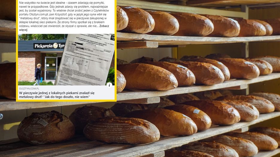 O sprawie pisze portal olsztyn.com.pl. Do redakcji serwisu zgłosił się olsztynianin, który oskarża jedną z lokalnych piekarni o fatalną pomyłkę. Mężczyzna twierdzi, że w zakupionym przez niego pieczywie znajdował się metalowy drut o długości około 1,5 centymetra.