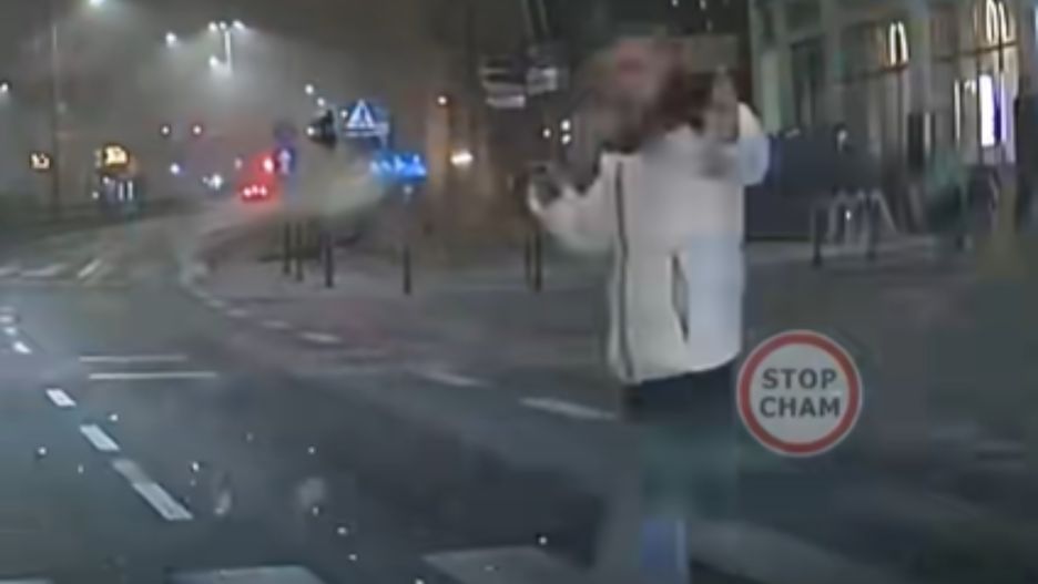Miał czerwone. Spójrzcie, co zrobił pieszy, gdy usłyszał klakson