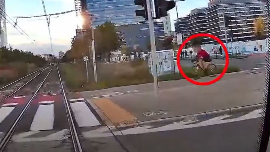 Tramwaje Warszawskie opublikowały nagranie ku przestrodze, na którym rowerzysta na ulicy Towarowej wjeżdża na czerwonym świetle, prosto pod nadjeżdżający tramwaj. Mężczyzna upadł na torowisko, unikając tragedii o włos - czytamy w opisie.