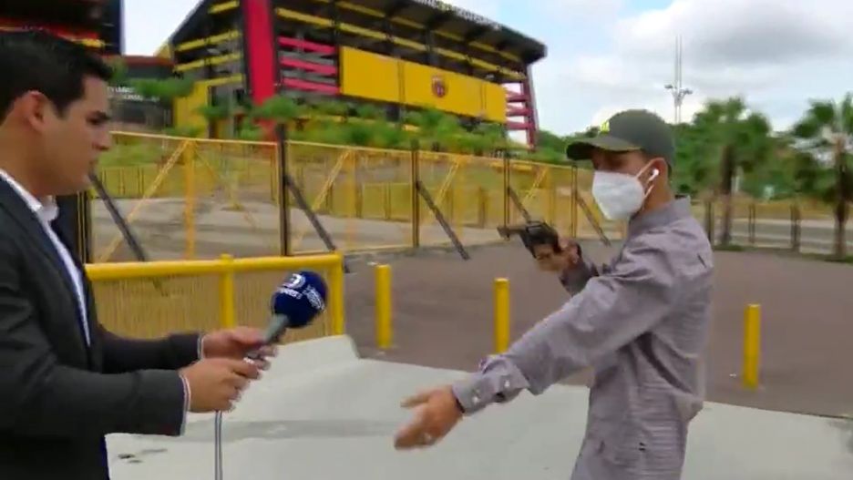 Napastnik wymierzył broń w głowę dziennikarza Diego Ordinoli, żądając jego telefonu. Akcja miała miejsce przed stadionem ekwadorskiej drużyny Serie A Barcelona Sporting Club, gdy reporter akurat przygotowywał się do wejścia na wizję.