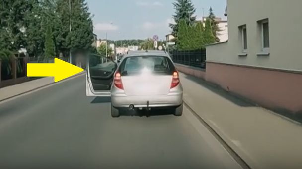 Kobieta kierująca autem stwierdziła, że gdy ruszyła miała zamknięte drzwi. - Jak mogła się nie zorientować - mówili do siebie interweniujący policjanci. - Mistrz kierownicy - podsumował funkcjonariusz.