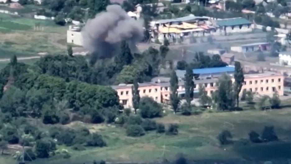 Gwardia Narodowa Ukrainy pochwaliła się w mediach społecznościowych nagraniem ukazującym atak na kwaterę główną sił rosyjskich. Miejsce odkryto przy pomocy bezzałogowych statków powietrznych.