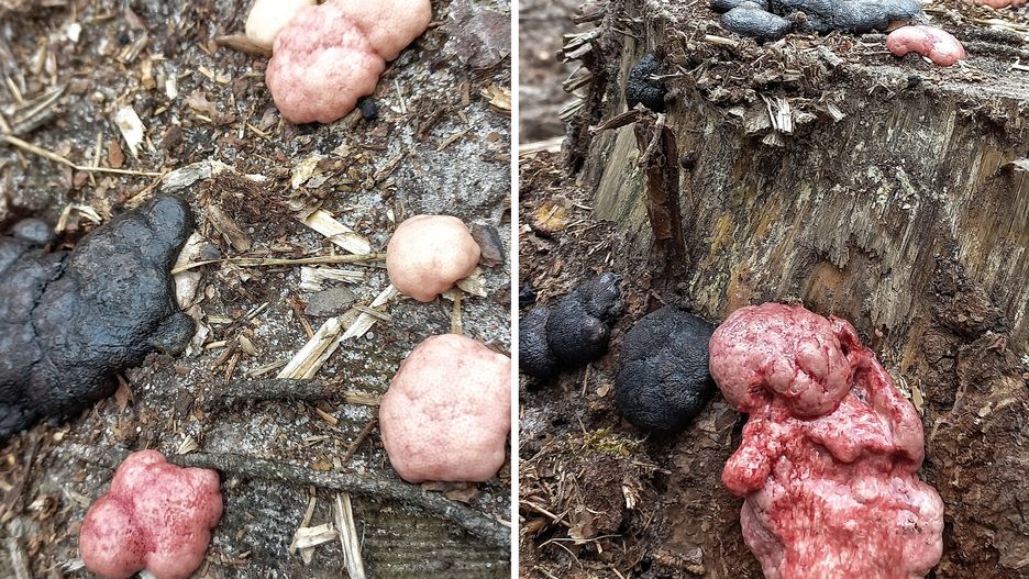 Smętosz czarny, znaleziony na pniu sosny, początkowo nie jest czarny, dopiero z czasem zmienia się w czarną narośl - dodają.