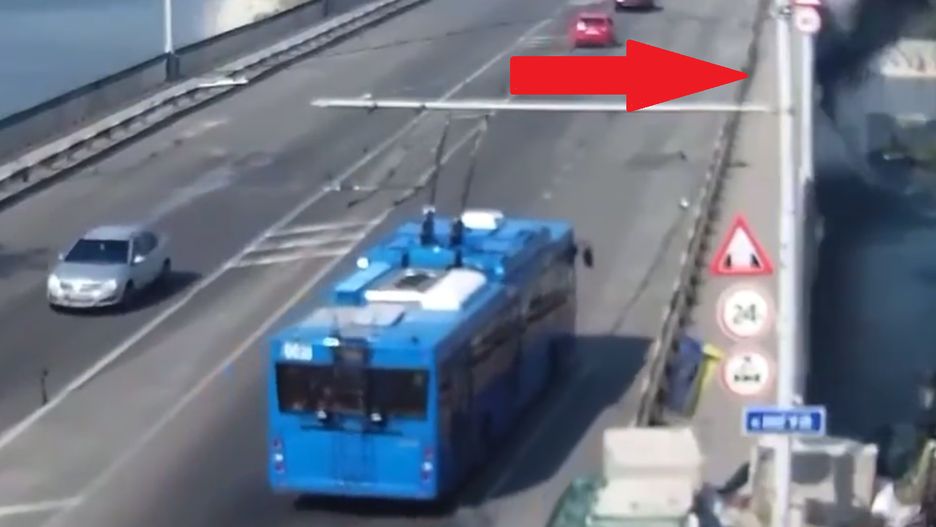 Na szczęście w tym przypadku Rosjanom nie udało się trafić w cel. Podpory mostu pozostają nieuszkodzone. Na nagraniu widać, że armia Putina zdecydowała się na uderzenie w most, po którym poruszały się samochody osobowe i trolejbus komunikacji miejskiej.