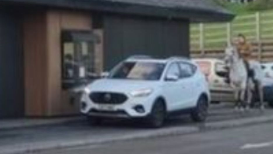 Przypatrując się temu, co dzieje się wokoło, nagle dostrzegł kobietę, która na białym koniu zmierzała w jego kierunku. Nie spodziewał się, że zdecyduje się ona... także zamówić coś do jedzenia w McDonaldzie. Na koniu podjechała więc do okienka drive-thru, a wcześniej, pomiędzy samochodami, czekała na swoją kolej.
