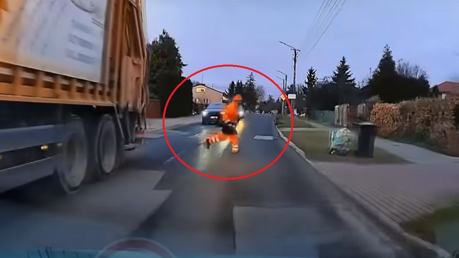 Mężczyzna zadziałał instynktownie i ze śmieciarki chciał pobiec na drugą stronę, aby zostawić worki. Sęk w tym, że na drugim pasie znajdował się rozpędzony samochód i gdyby nie jego refleks i ostre hamowanie, mogłoby dojść do tragedii.