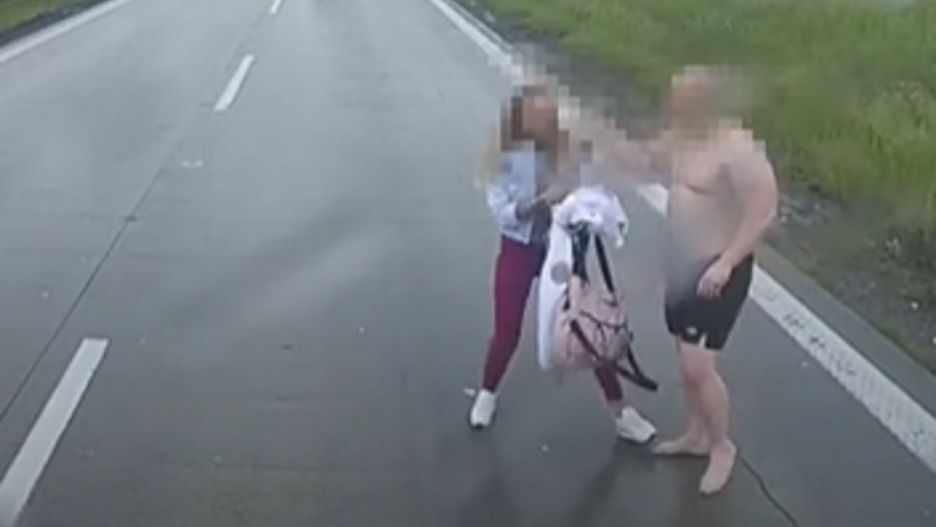 Pomiędzy parą doszło do awantury. Mężczyzna zaczął szarpać kobietą. Wywiązała się między nimi szamotanina. Było to szczególnie niebezpieczne, gdyż przebywali na prawym pasie ruchu autostrady. Kierowcy z innym pojazdów zaniepokojeni, że mężczyzna wyrządzi kobiecie krzywdę postanowili zainterweniować. Następnie para wróciła do swojego bmw. Widać było, że kierowca nie chciał jednak wpuścić kobiety do środka.