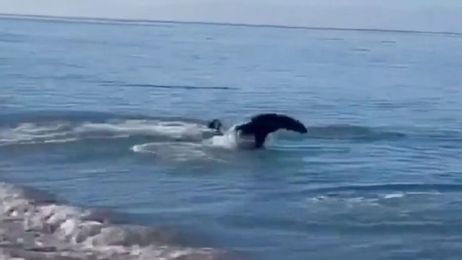 Zwierzęta pluskające się w wodach oceanu zostały nagrane przez Nelsona stojącego na brzegu. Materiał, który udało mu się zarejestrować, niewątpliwie można nazwać jedynym w swoim rodzaju. Nic dziwnego, że film szybko trafił na Twittera.