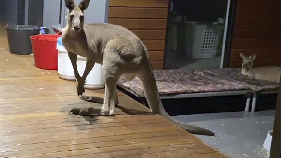 Nagranie pokazuje kangura skaczącego jak gdyby nigdy nic po ganku. Na filmie widać także drugie zwierzę wylegujące się przed domem. Kangury zupełnie nie przejmują się obecności kobiety.