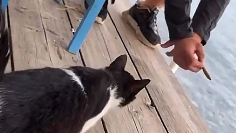 Film nakręcony przez użytkownika mkaramanolis został opublikowany na Instagramie. Za sprawą gazety "Proto Thema" trafił do szerszej widowni na YouTubie. Na nagraniu widać klienta restauracji wabiącego kota kawałkiem jedzenia na skraju tarasu.