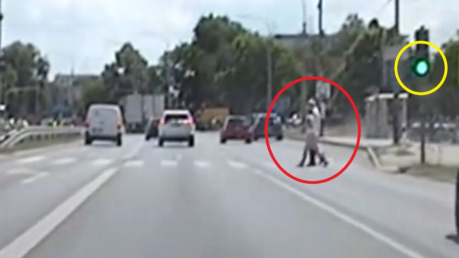 Zignorowali to 76-letni mężczyzna oraz jego 64-letnia siostra, a ich wyczyn zarejestrował policyjny wideorejestrator. Rodzeństwo postanowiło pokonać tę ruchliwą ulicę na czerwonym świetle, niemal pomiędzy samochodami, bo jak stwierdzili, "spieszyli się załatwić sprawy urzędowe".