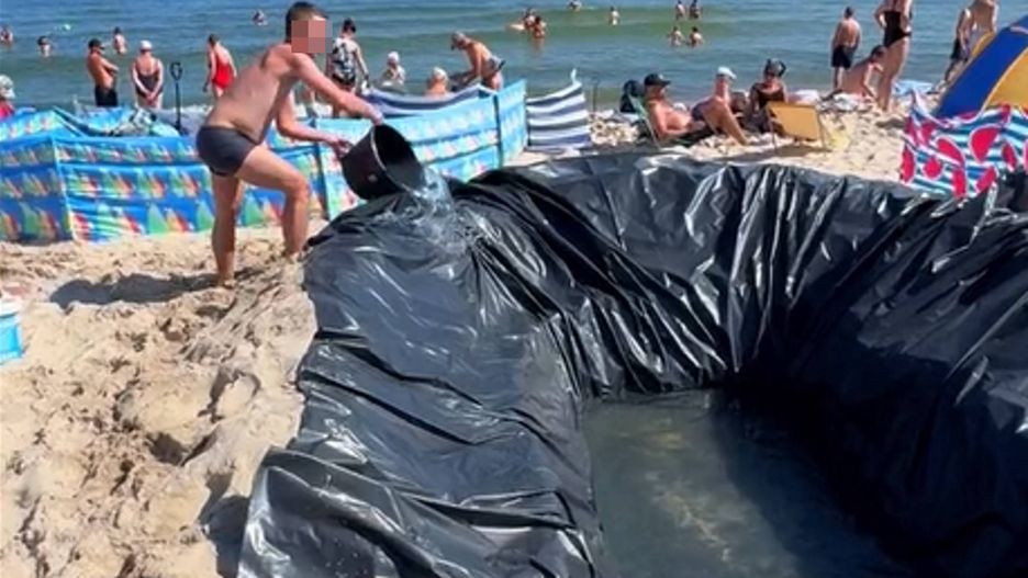 Kilka dni temu plażowicze we Władysławowie wpadli na niecodzienny pomysł. Wykopali na plaży ogromny dół, który wyłożyli czarną folią i przy użyciu wiaderek napełnili wodą z morza. Grupa turystów zbudowała prywatny basen oddalony zaledwie kilka metrów od morza.
