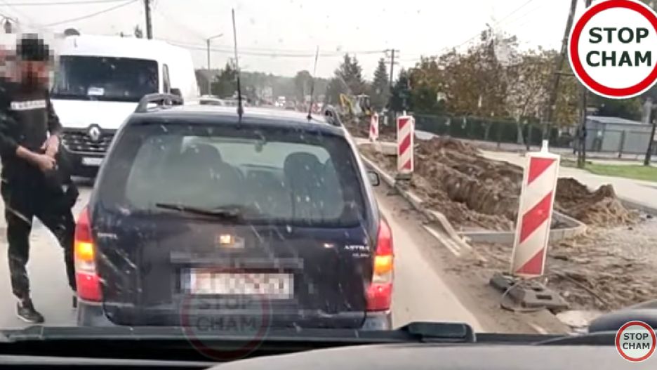 Później zrobiło się nieco nerwowo, gdyż ze względu na liczne utrudnienia drogowe, oba samochody jechały blisko siebie z niewielką prędkością. Aż doszło do zwężenia, przed którym kierowca opla się zatrzymał, więc bus go wyprzedził. I znowu usłyszał klakson, a rozwścieczony opel wskoczył przed niego przed samym zwężeniem.