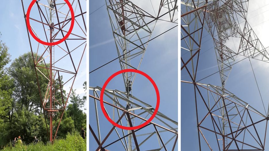 Nastolatkowie wdrapali się na słup energetyczny. Postawili służby na nogi