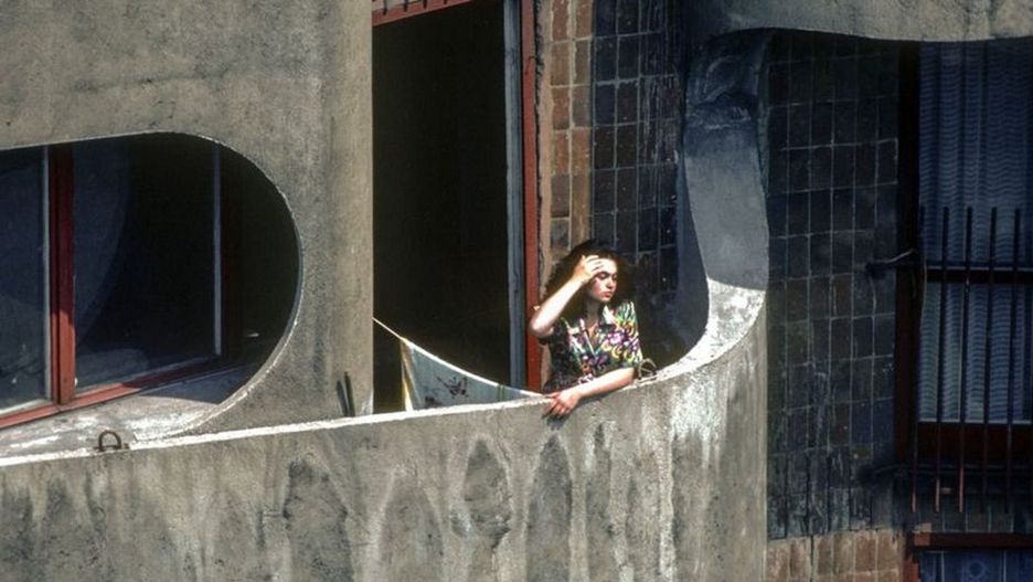 Zdjęcie wykonał jeden z najbardziej cenionych na świecie fotoreporterów Chris Niedenthal w lecie 1982 r. Kiedy fotograf spacerował po Wrocławiu zafascynował się zespołem sześciu wieżowców usytuowanych między placem Grunwaldzkim a mostem Grunwaldzkim. Fotoreporterowi udało się wejść do kilku mieszkań i z ich okien zrobić serię zdjęć.