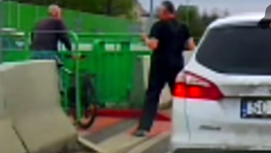 Mężczyzna, który jechał autem, uznał, że sprawa wymaga wyjaśnienia. Zatrzymał pojazd i wręcz z niego wyskoczył, a następnie podbiegł w stronę rowerzysty. Jego postawa wskazuje na to, że był gotowy się bić.