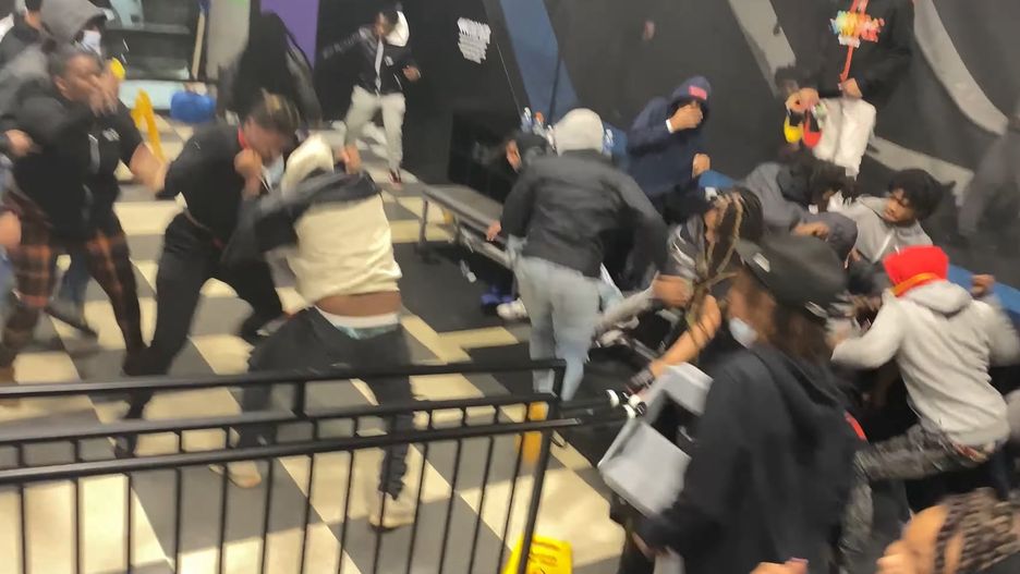 Rozwścieczony tłum próbowali powstrzymać pracownicy parku trampolin. Bijących się nastolatków dopingowali ich rówieśnicy, którzy nagrywali wszystko telefonami. Pomimo pandemii w holu zebrał się spory tłum.