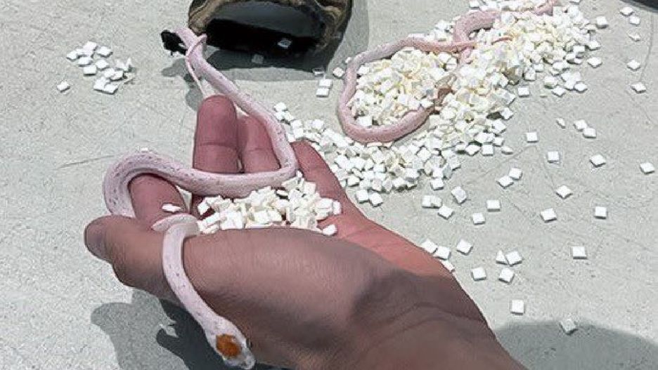 Zdjęcie dwóch malutkich, różowych węży, wyjętych z torebki opublikowała Administracja Bezpieczeństwa Transportu (TSA).