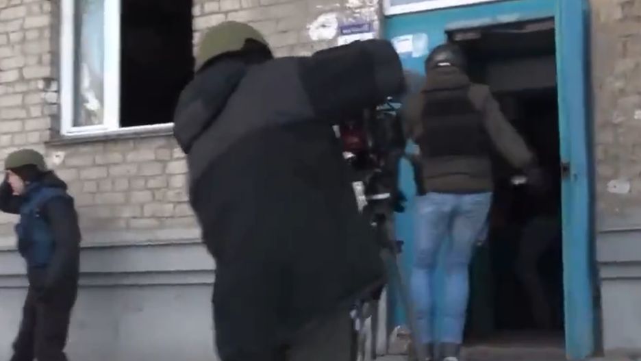 Podczas relacji niemieckiego dziennikarza słychać eksplozje i Niemiec z operatorem i innymi reporterami uciekają do piwnicy w najbliższym bloku mieszkalnym. Wszyscy zachowują się spokojnie i wydaje się, że przyzwyczaili się, do tego, co widzą i słyszą, ale w ich głosie nadal czuć przerażenie.