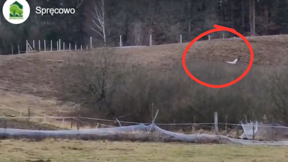 Mieszkańcy niewielkiej wsi Spręcowo, położonej w województwie warmińsko-mazurskim, w powiecie olsztyńskim, przeżyli niecodzienną niespodziankę. Na nagraniu opublikowanym 1 lutego na profilu społecznościowym "Spręcowo" uchwycono lecącego bociana.