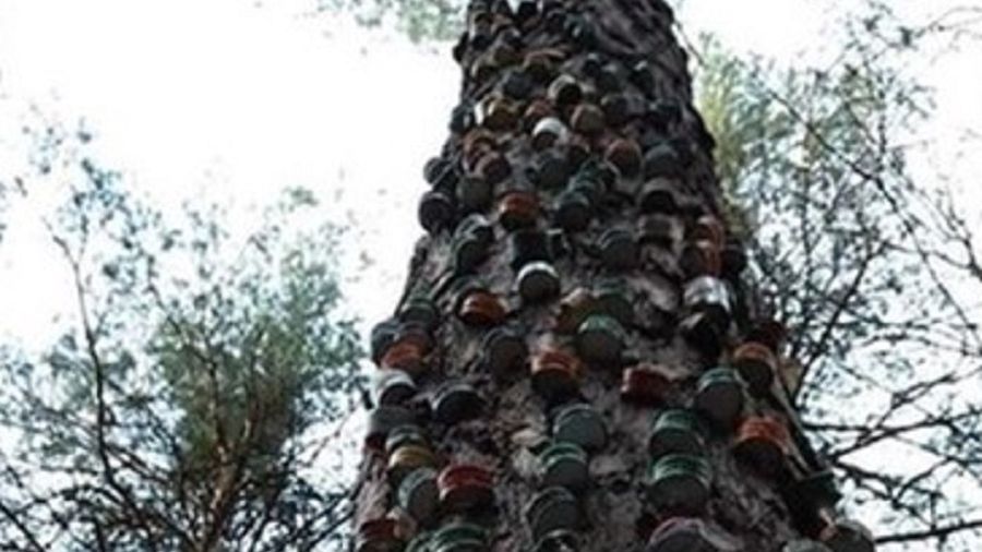 Leśnicy w Świętokrzyskiem natknęli się na wyjątkowy przykład wandalizmu. Ktoś powtykał w drzewo nakrętki z butelek po alkoholu. „Dzieło” rozciąga się na kilka metrów wysokości.