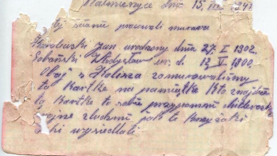 Obaj z Kalisza zamurowaliśmy tę kartkę na pamiątkę. Kto znajdzie tę kartkę, to sobie przypomni hitlerowską wojnę z ludźmi, jak to krzyżaki ludzi wysiedlali - napisali.