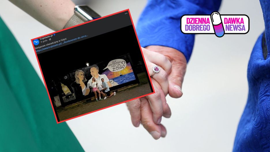 Portal Trojmiasto.pl donosi o niezwykłych oświadczynach, jakie miały miejsce w Gdyni. Pan Piotr poprosił ukochaną Katarzynę o rękę pod muralem, jaki powstał na kontenerze. - Wszystko mam nagrane, a gratulacje płyną z całego świata - mówi pan Piotr. To nasza #DziennaDawkaDobregoNewsa.