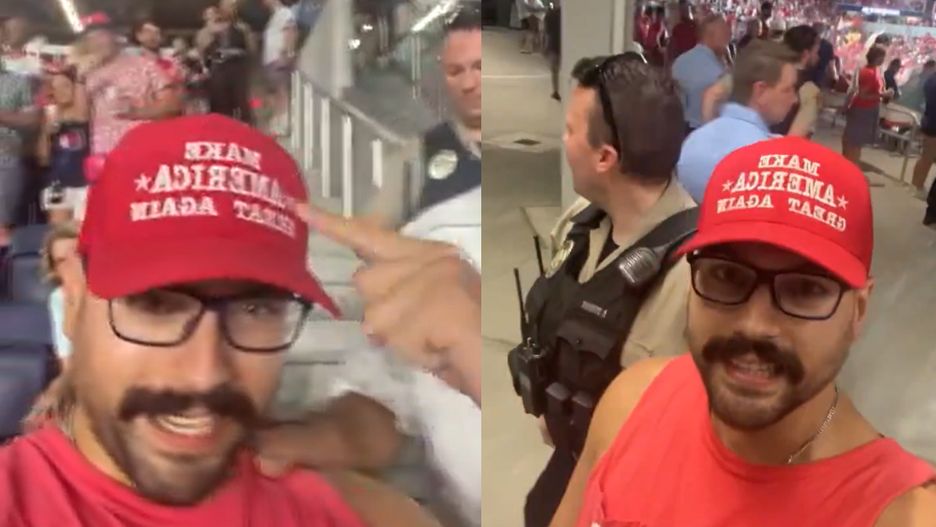 Nosił czapkę z hasłem Trumpa. Kibic został wyrzucony ze stadionu