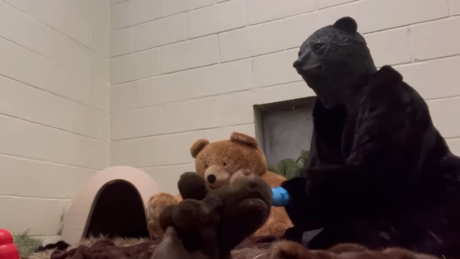 Pracownicy ośrodka zakładają stroje, które imitują wygląd zwierząt, aby młody niedźwiedź czuł się jak wśród swoich. To ma na celu nie tylko uspokojenie zwierzęcia, ale przede wszystkim uniknięcie kojarzenia ludzi z jedzeniem. Dzięki temu istnieje szansa, że niedźwiedź będzie mógł wrócić do życia w naturalnym środowisku.