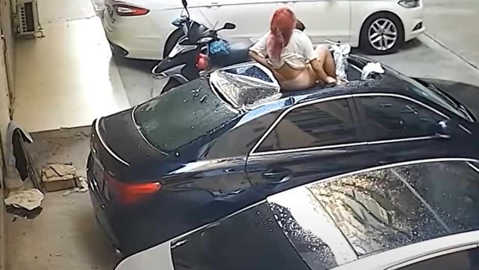 Tajwan. Mocno roznegliżowana kobieta nagle spadła z balkonu na dach samochodu. Internauci już zaczęli spekulować na temat przyczyn wypadku... Króluje jedna teoria.