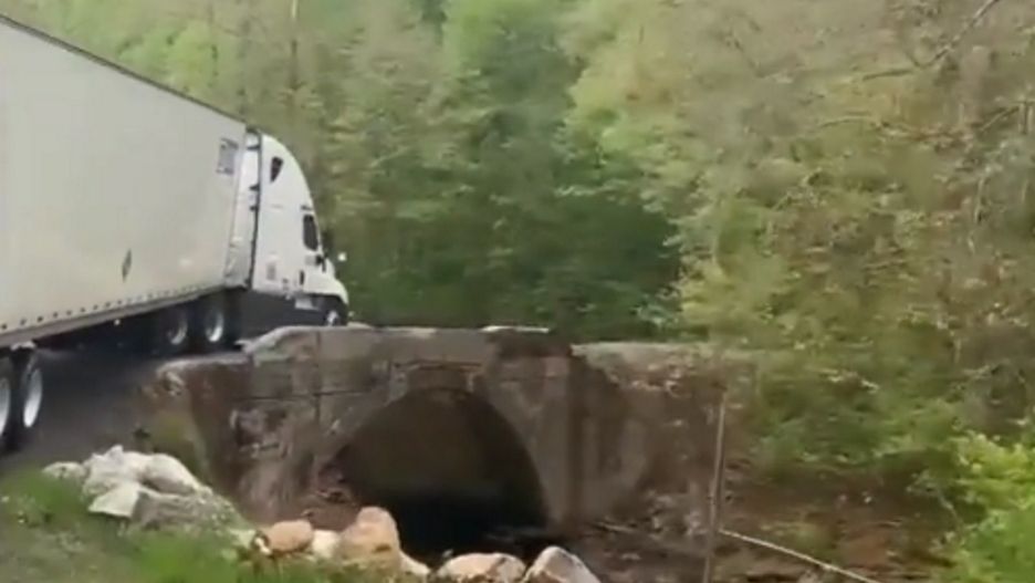 Centymetry dzieliły kierowcę w USA od wylądowania ciężarówką w małej rzece. Podczas jechania malowniczą drogą ściął zakręt przed wąskim mostkiem. Zrobił to na tyle nieumiejętnie, że najechał kołami naczepy na betonowy murek.