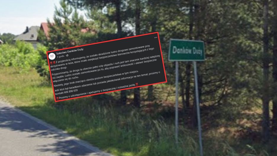 Sołectwo wskazuje wprost, że brak lustra " obniża poziom bezpieczeństwa w tym miejscu". "Jeśli ktoś był świadkiem zdarzenia lub posiada jakiekolwiek informacje na ten temat, prosimy o kontakt 606 898 659" - czytamy we wpisie władz Dankowa Dużego. Przedstawiciele sołectwa apelują o rozważną jazdę.