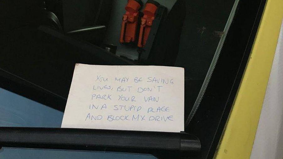 "Może i ratujecie ludzkie życia, ale nie parkujcie w głupim miejscu i nie blokujcie mojego podjazdu" - karteczkę z takimi słowami znaleźli brytyjscy ratownicy za wycieraczką.