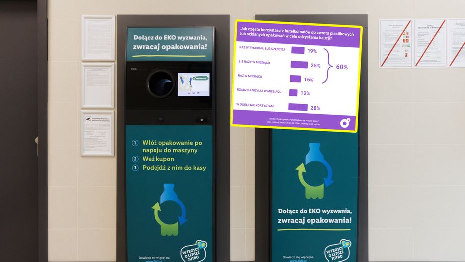 Z uzyskanych danych wynika, że 60 proc. badanych korzysta z butelkomatów co najmniej raz w miesiącu. Największa grupa robi to 2-3 razy w miesiącu (25 proc. odpowiedzi). Kolejne 19 proc. deklaruje korzystanie raz w tygodniu lub częściej, a 16 proc. - raz w miesiącu.