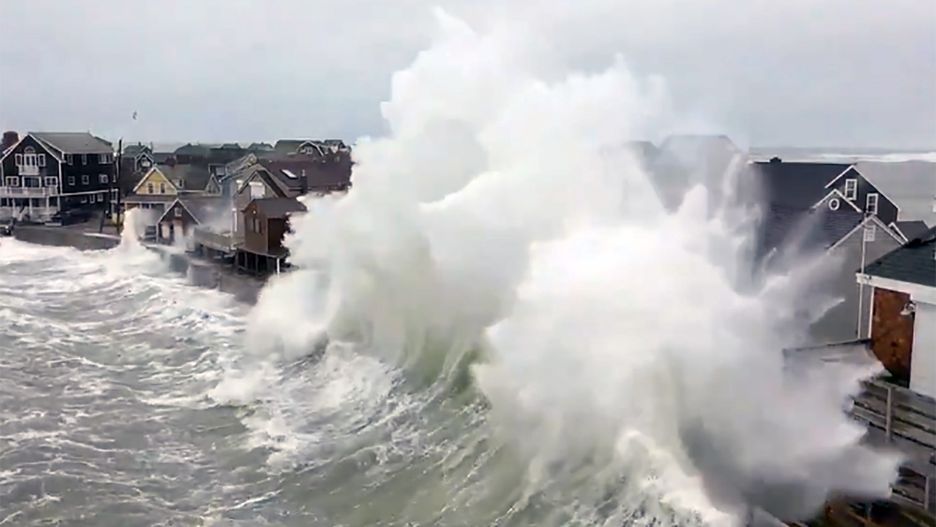 W miejscowości Scituate w stanie Massachusetts woda z łatwością sforsowała falochron oddzielający ocean od domów mieszkalnych. Kilkanaście budynków zostało zalanych. W mediach społecznościowych pojawiło się nagranie, na którym widać, jak woda spada na jeden domów z wysokości kilkudziesięciu metrów.