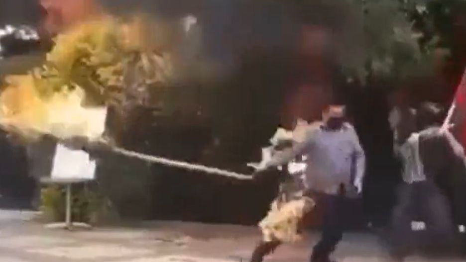 Niezbyt udanie grupa młodych Palestyńczyków zaprotestowała przeciw Izraelowi. Próba spalenia jego flagi mogła skończyć się tragicznie dla chłopaka, który najpierw ją podpalił, a potem sam zamienił się w żywą pochodnię. Nie zwrócił uwagi na to, skąd wieje wiatr. A że płomienie szybko pochłonęły flagę Izraela, nie zdążył odrzucić drzewca.