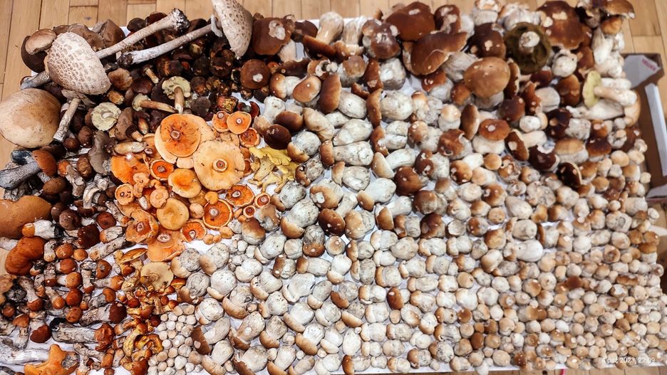 Beskid Żywiecki. Trzeci wysyp - 4x to samo miejsce. Borowik Szlachetny - 438szt - 10kg Koźlarz pomarańczowy - 1.2 kg Koźlarz Babka - 1.1kg maślaki, rydze, pieprzniki, podgrzybki - relacjonuje pan Tadeusz.