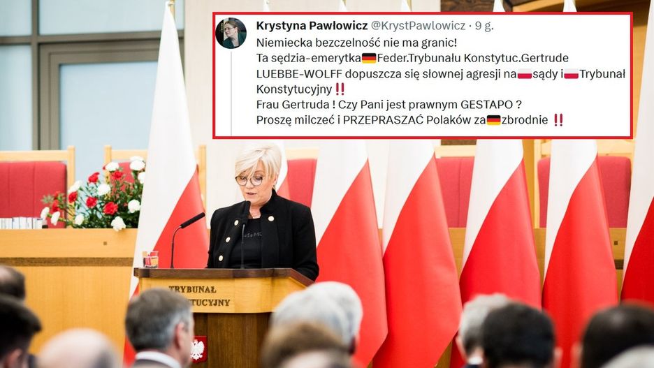 Krystyna Pawłowicz znów prowokuje. Tym razem sędzia Trybunału Konstytucyjnego zaatakowała swoją koleżankę po fachu z Niemiec - Gertrudę Luebbe-Wolff. Emerytowana sędzia Federalnego TK stwierdziła na łamach "Frankfurter Allgemeine Zeitung", że sędziów polskiego trybunału należy usunąć i rozliczyć dyscyplinarnie. Pawłowicz nie mogła przejść obok tych słów obojętnie.
