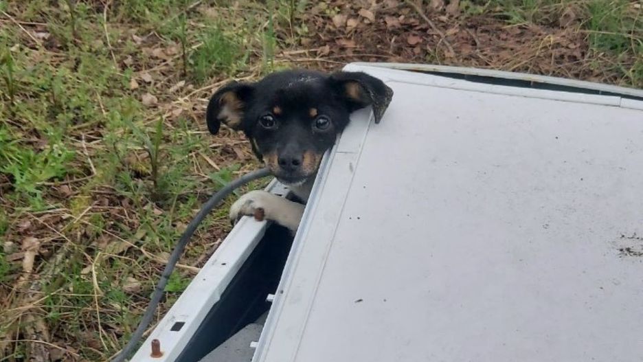Piesek został odnaleziony przez przypadkowego spacerowicza. Mężczyzna usłyszał piski dochodzące ze zdezelowanego urządzenia, przykrytego metalową płytą. W bębnie pralki znajdowały się odchody, wskazujące, że zwierzę spędziło tam kilka dni.