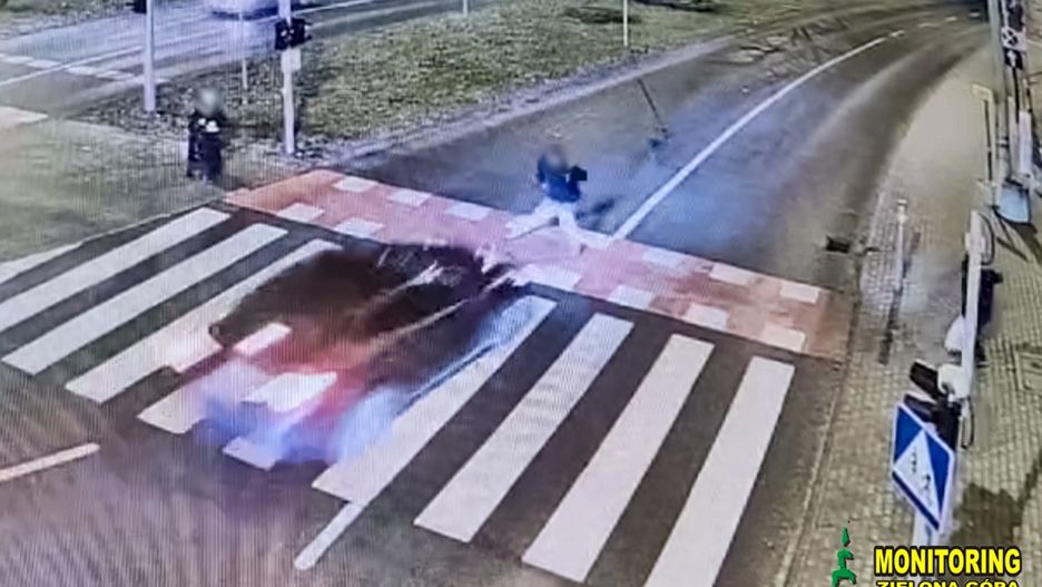 Pieszy wszedł na pasy na czerwonym świetle. Nagranie z Zielonej Góry