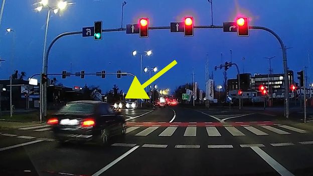 Na wideo widać, jak na skrzyżowaniu zapala się żółte, a następnie czerwone światło. Kierowca osobowego BMW za nic ma sygnalizację świetlną. Chociaż "czerwone" pali się przez kilka sekund, z premedytacją przejeżdża przez skrzyżowanie, jadąc ze sporą prędkością.