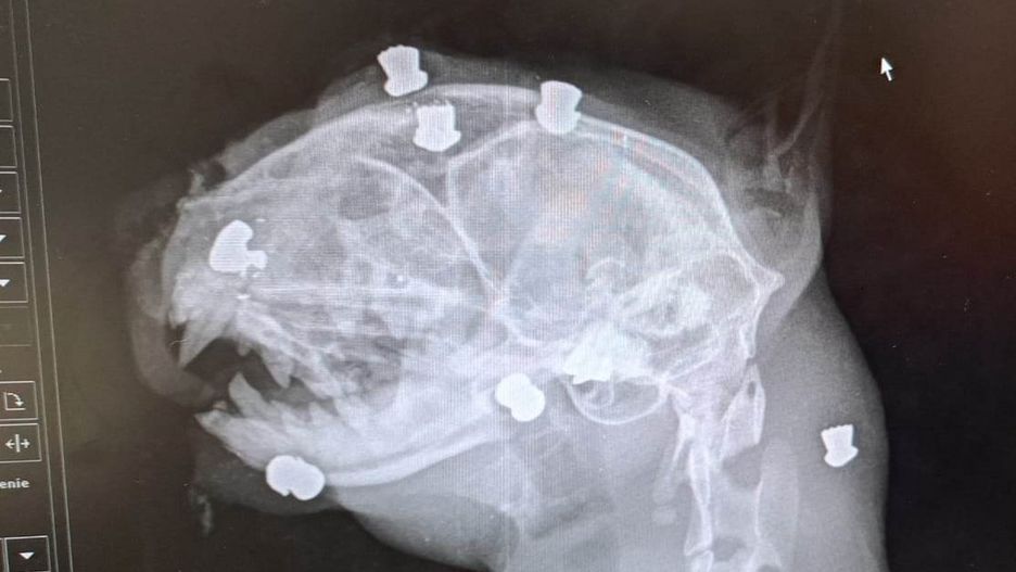 Gdy weterynarz zrobił prześwietlenie poranionej głowy zwierzęcia, okazało się, że znajduje się w niej drugie tyle śrutu.