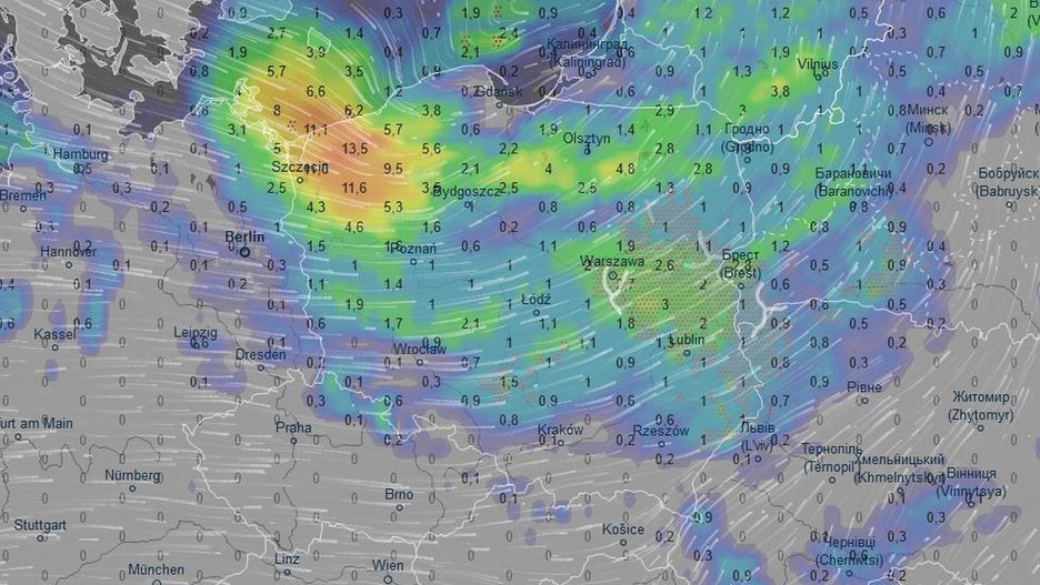 Za sprawą przemieszczających się raz po raz przez Polskę frontów atmosferycznych w całym kraju przeważać będą chmury i występować będą przelotne opady deszczu. W województwach północnych (w zachodniopomorskim i pomorskim oraz na Warmii, Mazurach i na Podlasiu) będą nieco intensywniejsze, tutaj w ciągu doby spadnie od 10 do 25 l/m2.