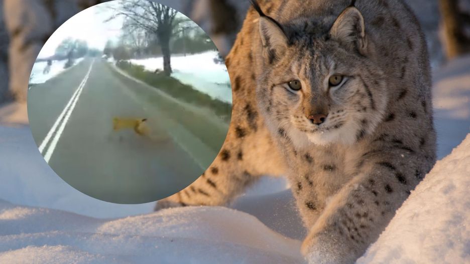 Niecodzienne spotkanie udało się nagrać przy drodze w sąsiedztwie lasu na terenie Nadleśnictwa Krasiczyn. Na nagraniu widać rysia - zwierzę znane ze swojej skrytości - który przebiega przez jezdnię w pełnym świetle dnia.