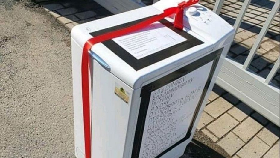 Protestujący przeciwko agresji Federacji Rosyjskiej wobec Ukrainy manifestują swój sprzeciw w rozmaity sposób. Przed ambasadą Rosji w Helsinkach postawiono pralkę, na której znajdowała się specjalna wiadomość.