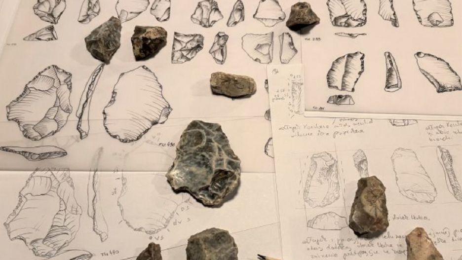 W tych samych warstwach znalezione również było 40 narzędzi krzemiennych, które musiały być używane przez człowieka. Narzędzia krzemienne musiał wykonać Homo heidelbergensis, czyli przodek neandertalczyków.