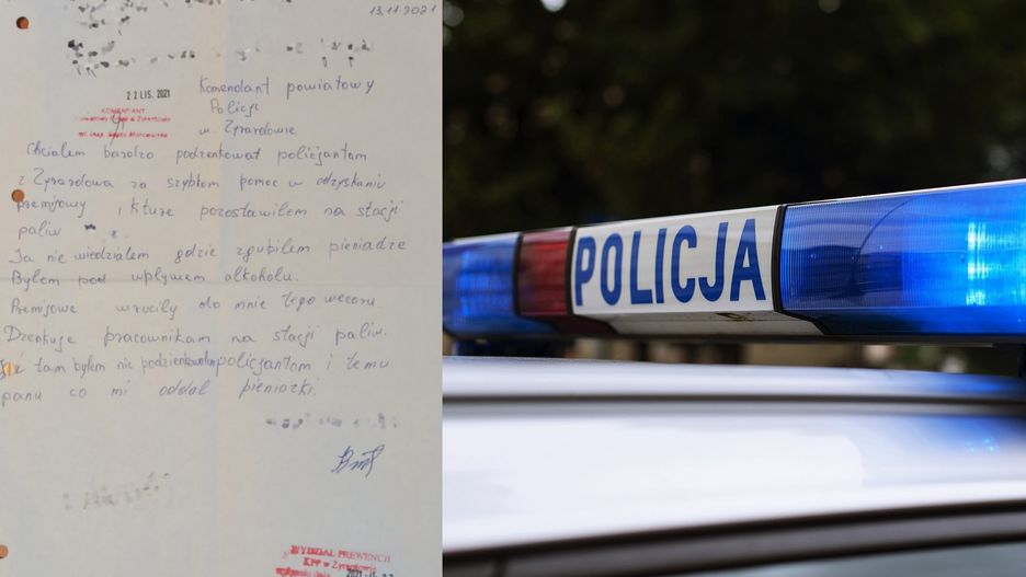 48-letni Ukrainiec postanowił podziękować policjantom. Wysłał im krótki list. "Chciałbym bardzo podziękować policjantom z Żyrardowa za szybką pomoc w odzyskaniu pieniędzy, które pozostawiłem na stacji" - napisał.