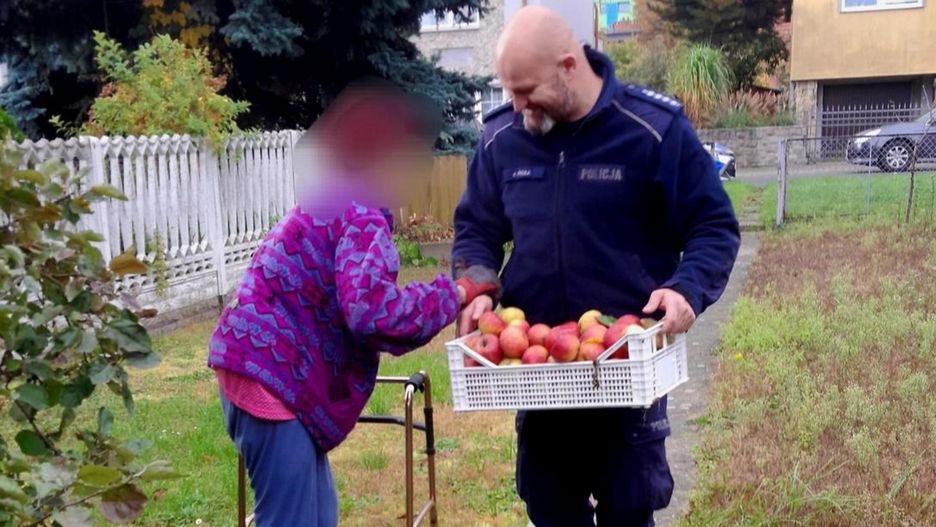 Podczas obchodu swojego rejonu dzielnicowy z Oławy zauważył starszą panią, która poruszając się przy użyciu balkoniku, zbierała w ogrodzie jabłka. Kobieta, ze względu na swój wiek, miała trudność z przeniesieniem ciężkiej skrzynki do domu. Policjant natychmiast zareagował i pomógł seniorce.