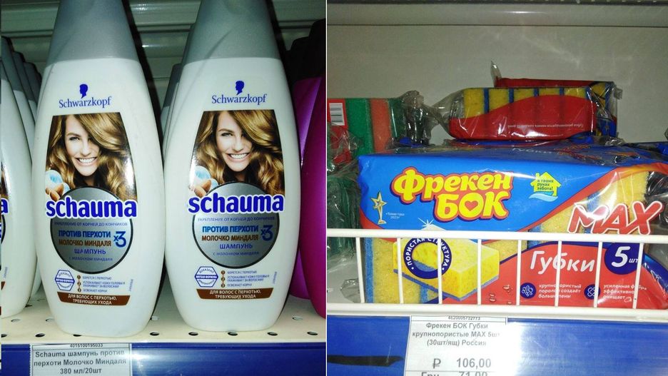 Na jednym ze zdjęć widać szampon znanej marki, który kosztuje w mariupolskiej drogerii 185 UAH, podczas gdy w zwykłym sklepie w Ukrainie za tenże szampon zapłacić trzeba zaledwie 69 UAH.