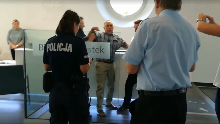 Janusz Sanocki pojawił się w Opolskim Urzędzie Wojewódzkim. Zdenerwowany roztrzaskał szklane bramki przy biurze przepustek. - To ograniczanie dostępności obywatela do urzędu - mówił. Krewkiego parlamentarzystę musieli siłą usunąć funkcjonariusze.